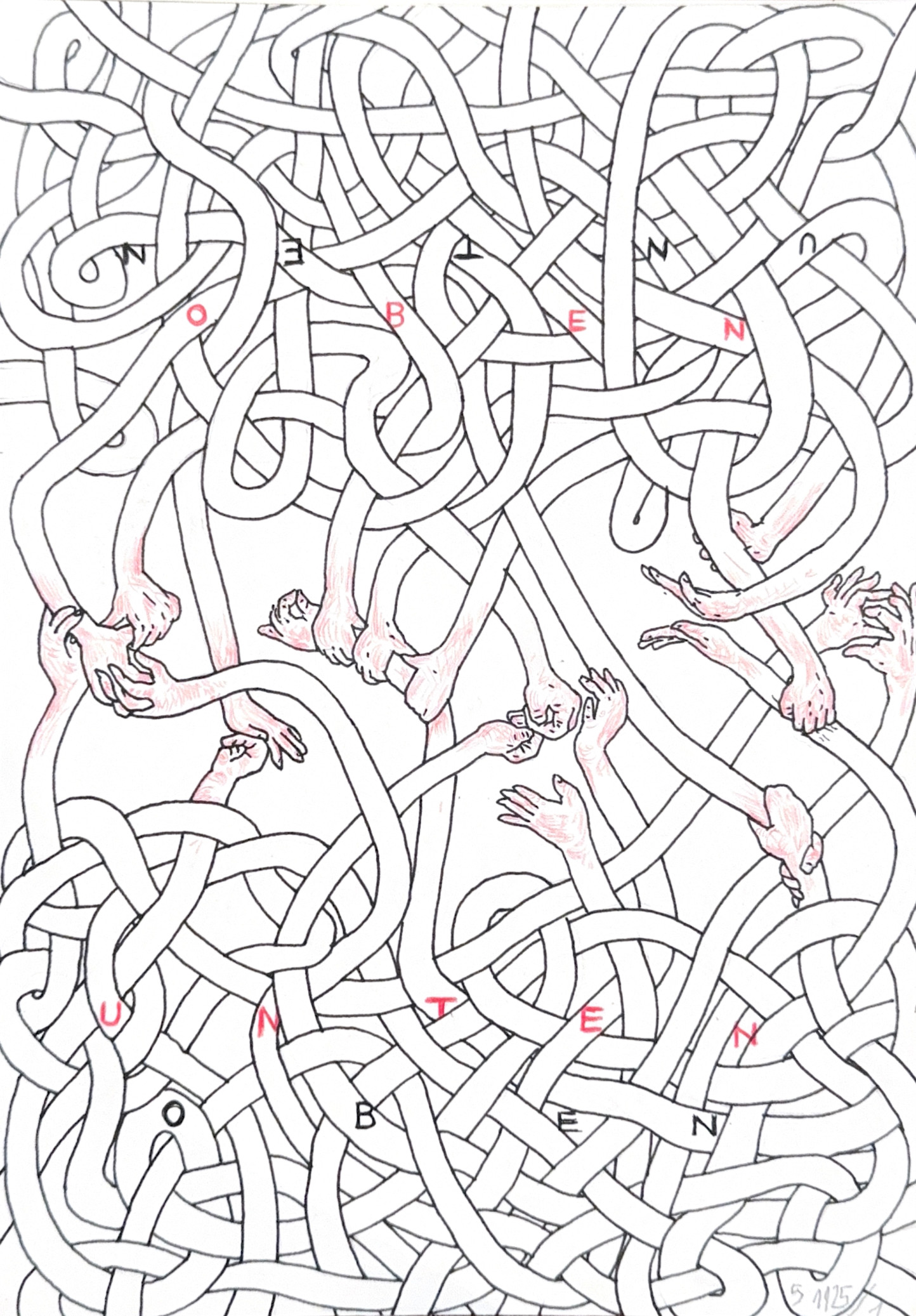 Ellen Keusen is an artist of quiet yet unwavering movement. Her line is not a tool of limitation but an open breath, “for whom the connection between two points is not essential, […] but rather the in-between, and with it the trace of time set in motion” (Stefan Kraus, Ausdehnung und Grenze – Zu Werken von Ellen Keusen). It is within this in-between, this almost imperceptible hovering, that her art unfolds – as a growing structure, as organic thought, as a patient search for a form that can never be fully grasped.